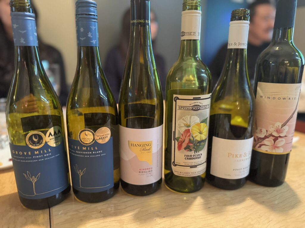 晴れて全員合格した検定の後は、テキストに出てきた品種のワインのテイスティング会を開催しました。まずは外観を楽しむ方法からはじめ、その後にアロマ(香り)の取り方、そして味わい方まで。これまで何気なくワインを飲んでいたことも、これからはもっと深く楽しめるように講座をしていただきました。最後にサブ講師を務めてくださったキリンHD社の和田氏に、コルクの抜栓方法も教わりました。テイスティングしたワインは、爽やかなアロマが香るニュージランドのソーヴィニヨンブラン、ピノグリ、リースリング、そして少し樽感の効いたオーストラリアのシャルドネ、ピノノワール、そしてシラーズ。いずれもテキストに出てきたベーシックな品種100%のワインで、その品種が持つ”らしさ”を味わうことができました。いずれも大阪に本社のあるVai&Fellows社が扱う、亜硫酸を極力控えたナチュラル系ワイン。皆んながそれぞれの好みの品種を見つけることができました。