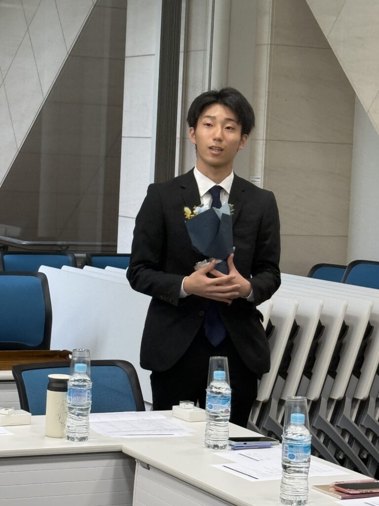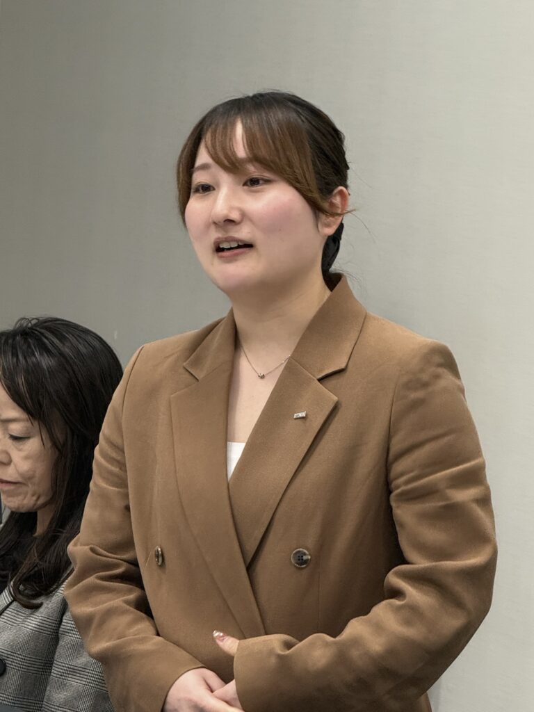新入社員がひとりずつ自己紹介をし、今後の展望や挑戦について語りました。