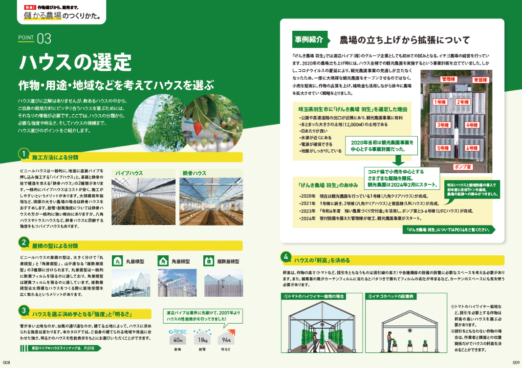 これまで農家さまに寄り添ってきた経験と、自社製品の運用実験などを行う実践農場で培った実績をもつ渡辺パイプだからこそ提案できる特集記事となった。