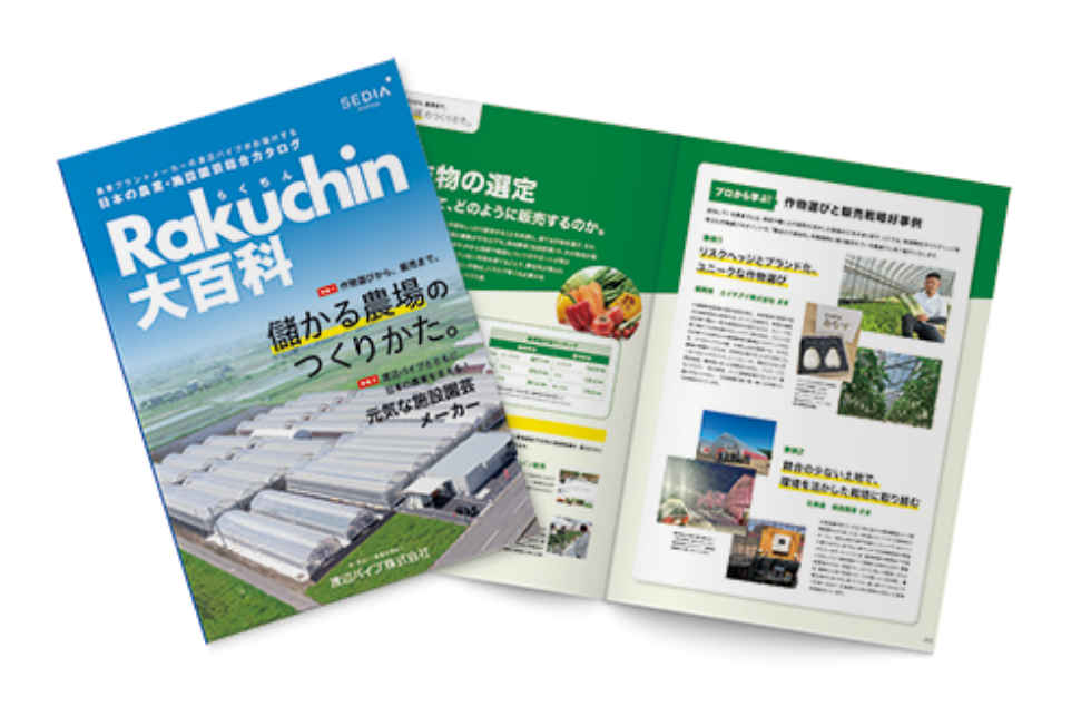 これまでは、渡辺パイプの製品カタログとしての側面が強かった「らくちん大百科」だが、農業業界の中でも特に施設園芸は、市場規模が縮小傾向にある今だからこそ業界一丸となって盛り上げていく必要があるという渡辺パイプの想いを形にするため、ビニールハウス設備メーカーさまにも広く取材を行い、まさに施設園芸メーカーが紙上で勢ぞろいするような企画構成とした。ビニールハウスの施工・設計を行っている渡辺パイプの全国をつなぐネットワークと、専門的な技術や強みをもつハウス設備メーカーが共創していくことで営農家や販売店に向けて総合提案ができる営業ツールとしての「施設園芸総合カタログ」が完成した。